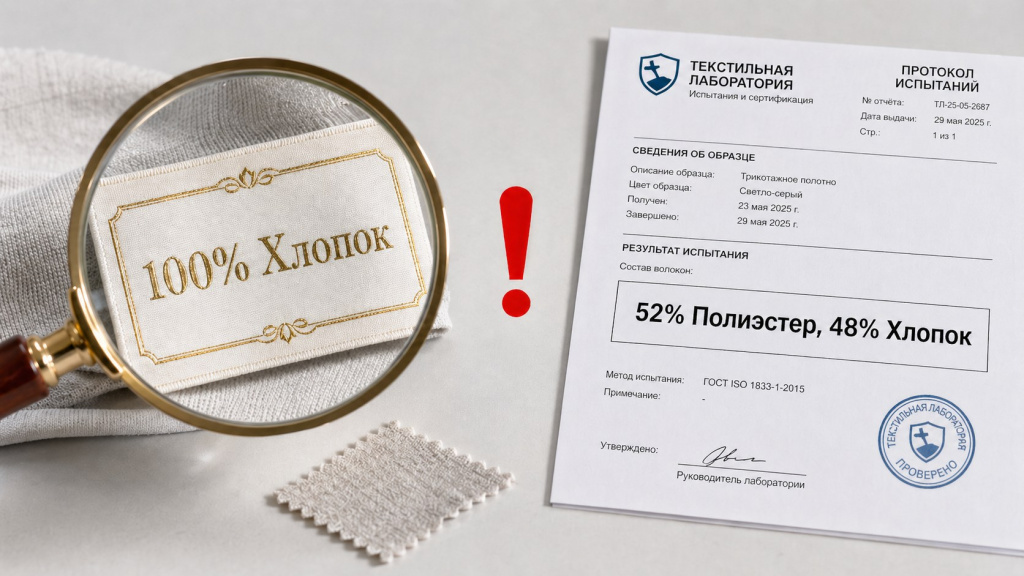 - Требуйте состав в процентах по каждому волокну. «100% cotton» на этикетке — не документ. Нужна спецификация или протокол испытания.